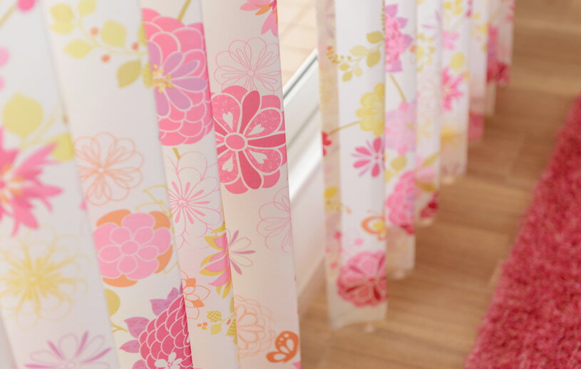 スタンダード対応商品スタンダード対応商品キッズ 〜フロール〜 ピンク 【撮影カーテン仕様】ヒダ数:デラックス 1.5倍ヒダ(2つ山) 鮮やかなフラワーモチーフを大胆に散りばめました。