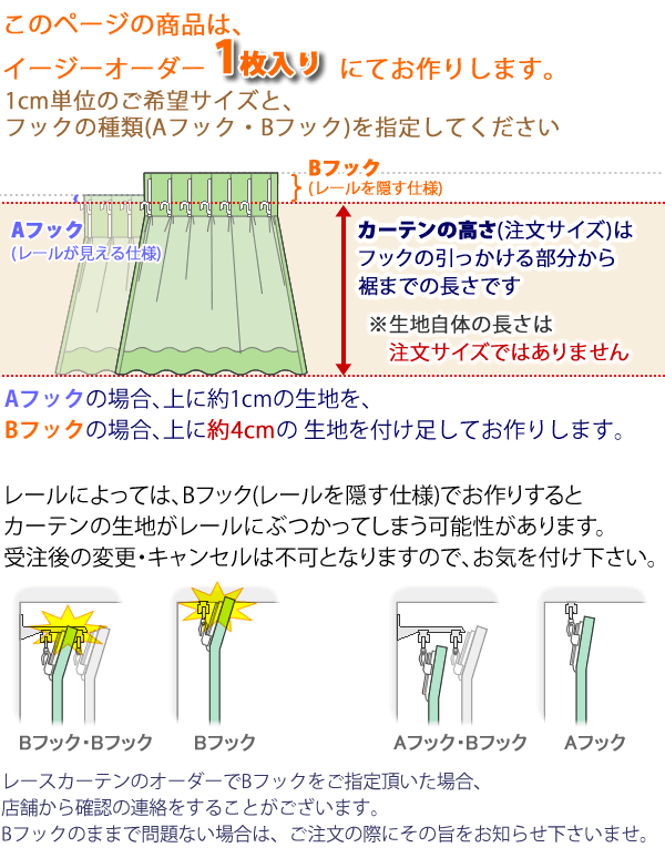 (フックから上には、生地はほとんどプラスされていません)レールを隠すのがBフックです。